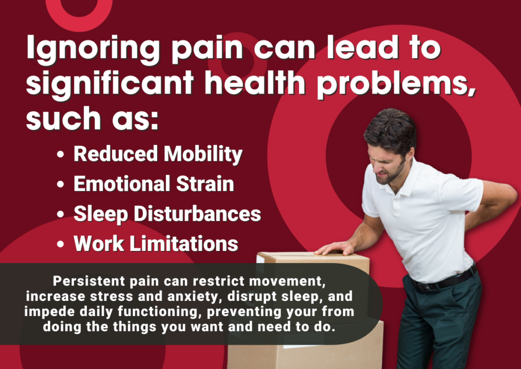 Ignoring pain can lead to more significant health problems, including: